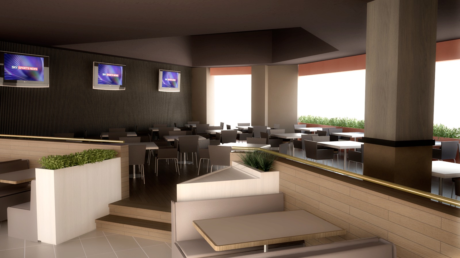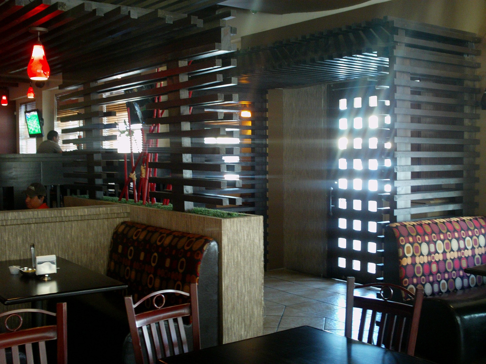 con amplios ventanales que aprovechan la luz natural y materiales como alucobond rojo y graficos en muros que generan identidad propia del restaurante.