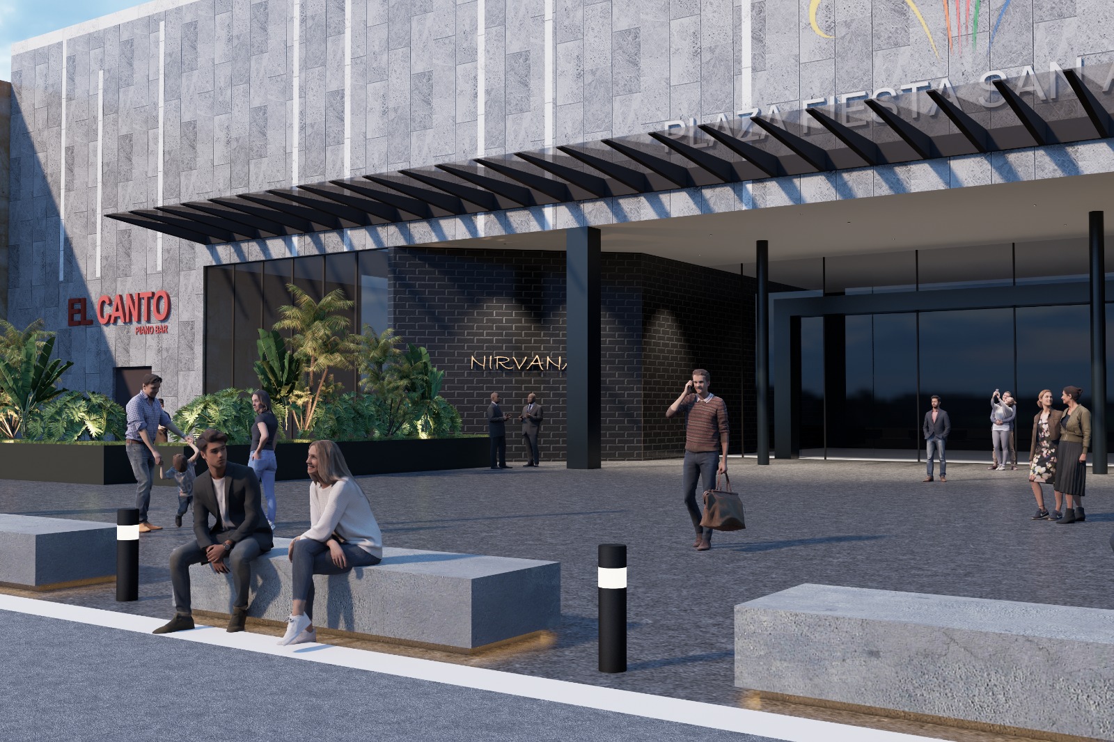 La propuesta de remodelación incluye un diseño contemporáneo, que aportan un aspecto moderno y elegante a la entrada principal de la plaza.enfocado en optimizar el flujo de personas, creando una entrada más espaciosa y accesible..
